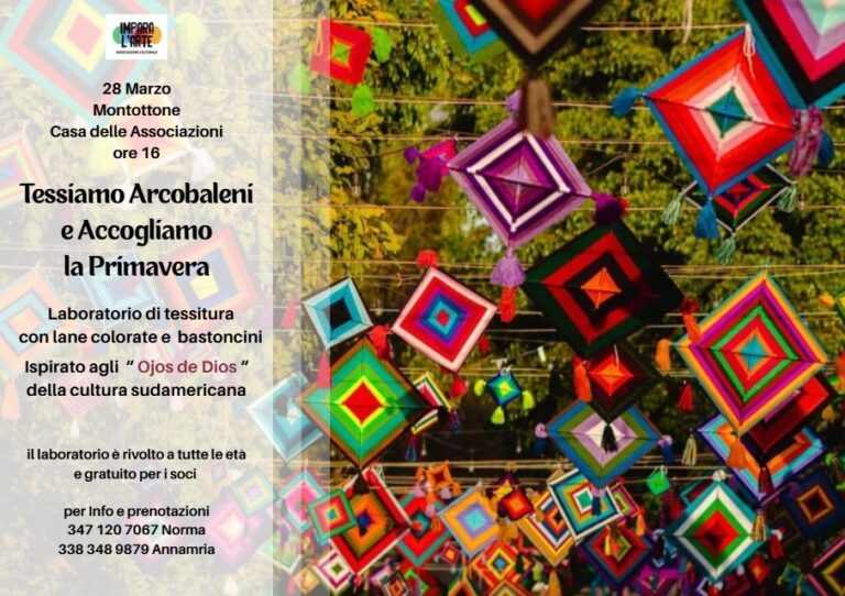 Laboratorio di tessitura con lane colorate e bastoncini (o rametti) per creare gioiosi "Ojos de Dios", (gli "Occhi di Dio"...
